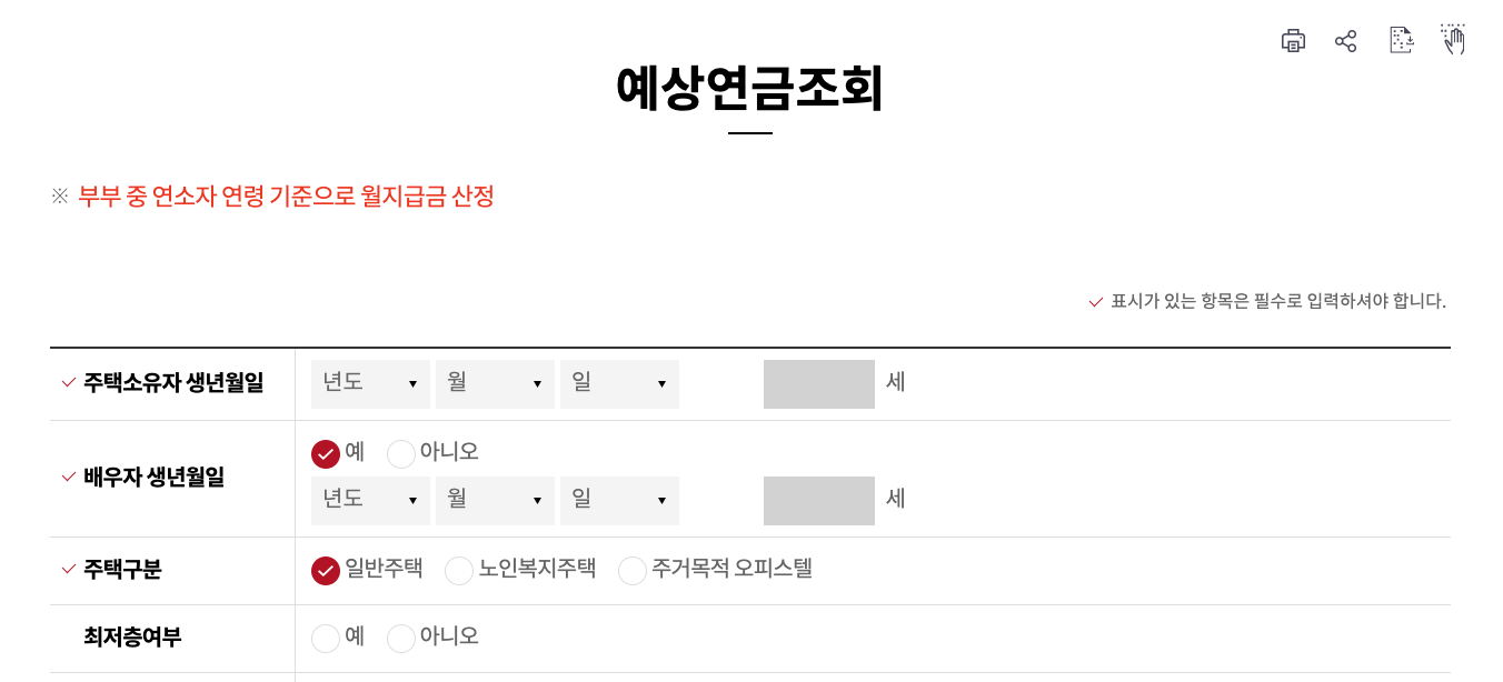 주택의 공시가격, 신청자의 나이, 선택한 지급 방식에 따라 수령액이 결정됩니다.