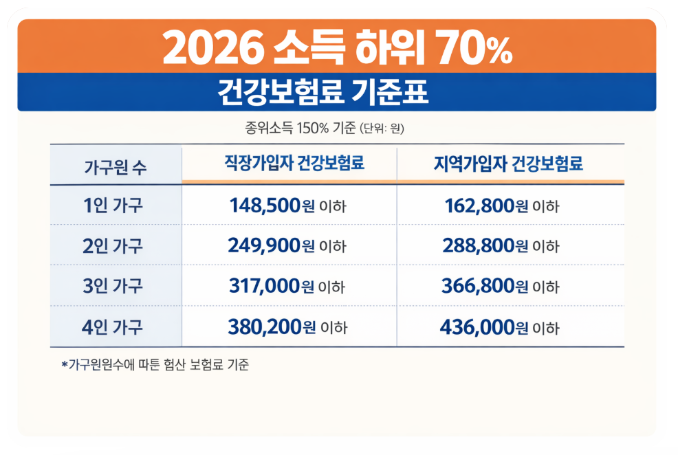소득 하위 70%는 일반적으로 ‘중위소득 150%’ 수준을 기준으로 판단됩니다.