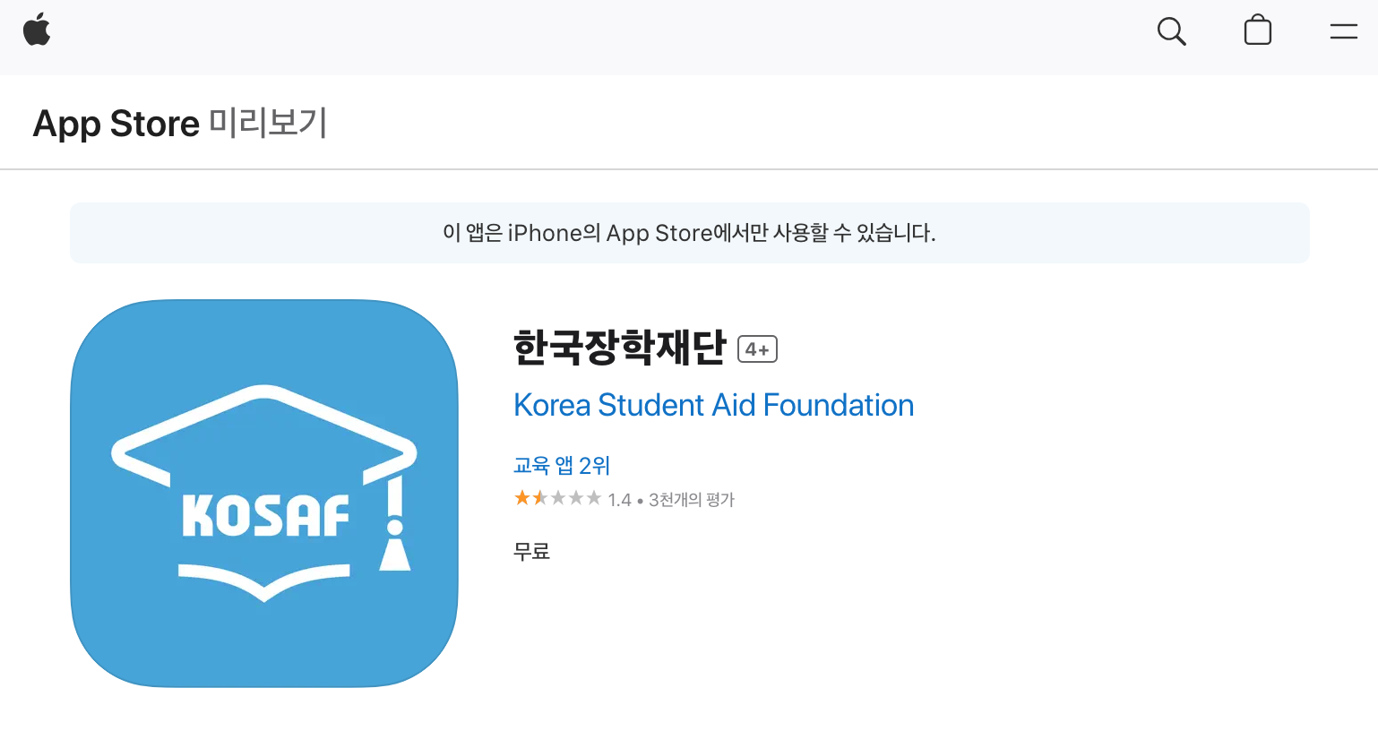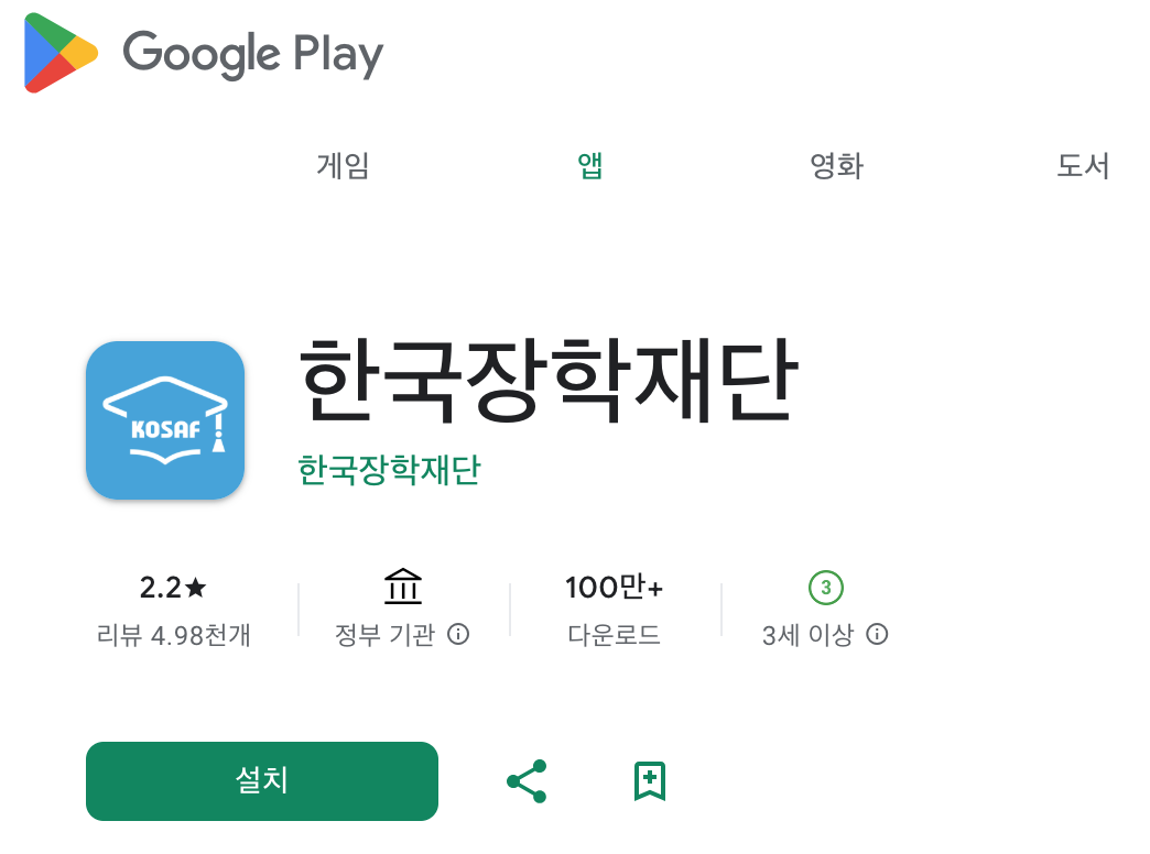 모바일 앱 - 한국장학재단에서 신청 가능합니다.