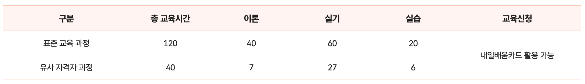 - 유사 자격자 과정: 사회복지사, 요양보호사, 간호조무사, 청소년지도사, 청소년 상담사등이 해당됩니다.