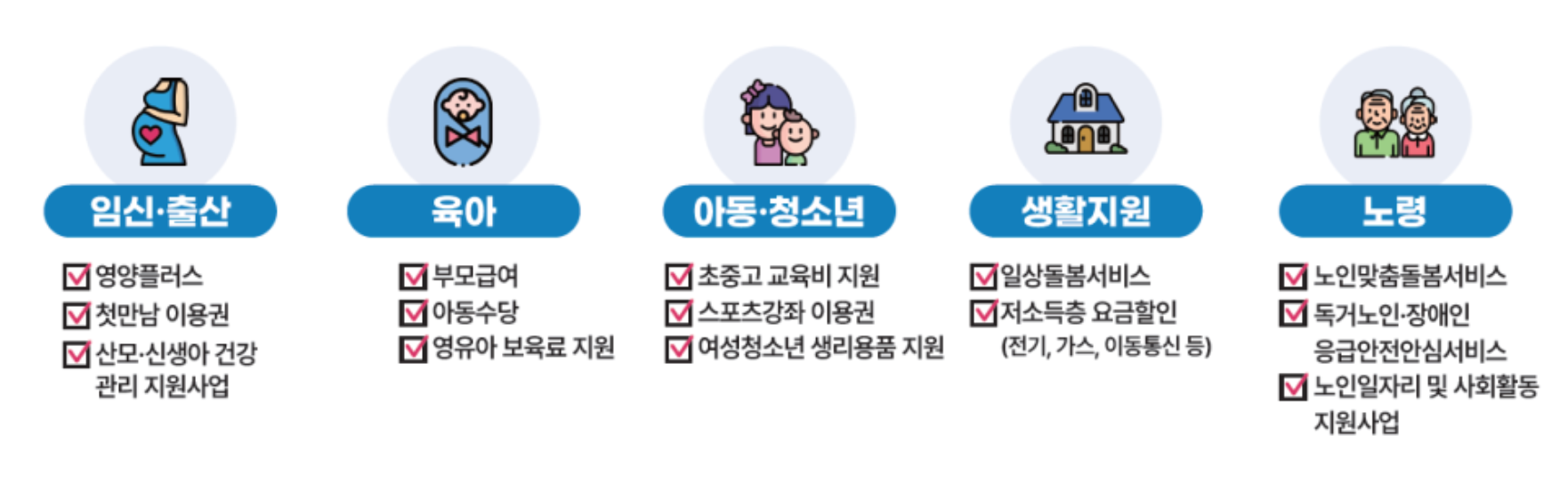 기존에는 복지멤버십을 통해 가정양육수당, 아동수당, 생계급여, 장애인연금 등 83종의 중앙부처 복지서비스와 서울형 기초보장제도 등 6종의 서울특별시 복지서비스를 포함해 총 89종의 복지서비스를 안내받았었습니다.