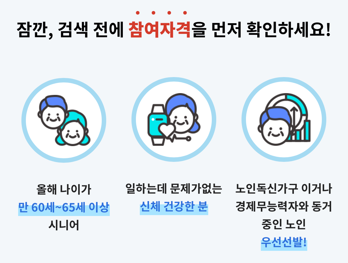 참여 연령: 만 65세 이상(일부 사업은 60세 이상 가능)